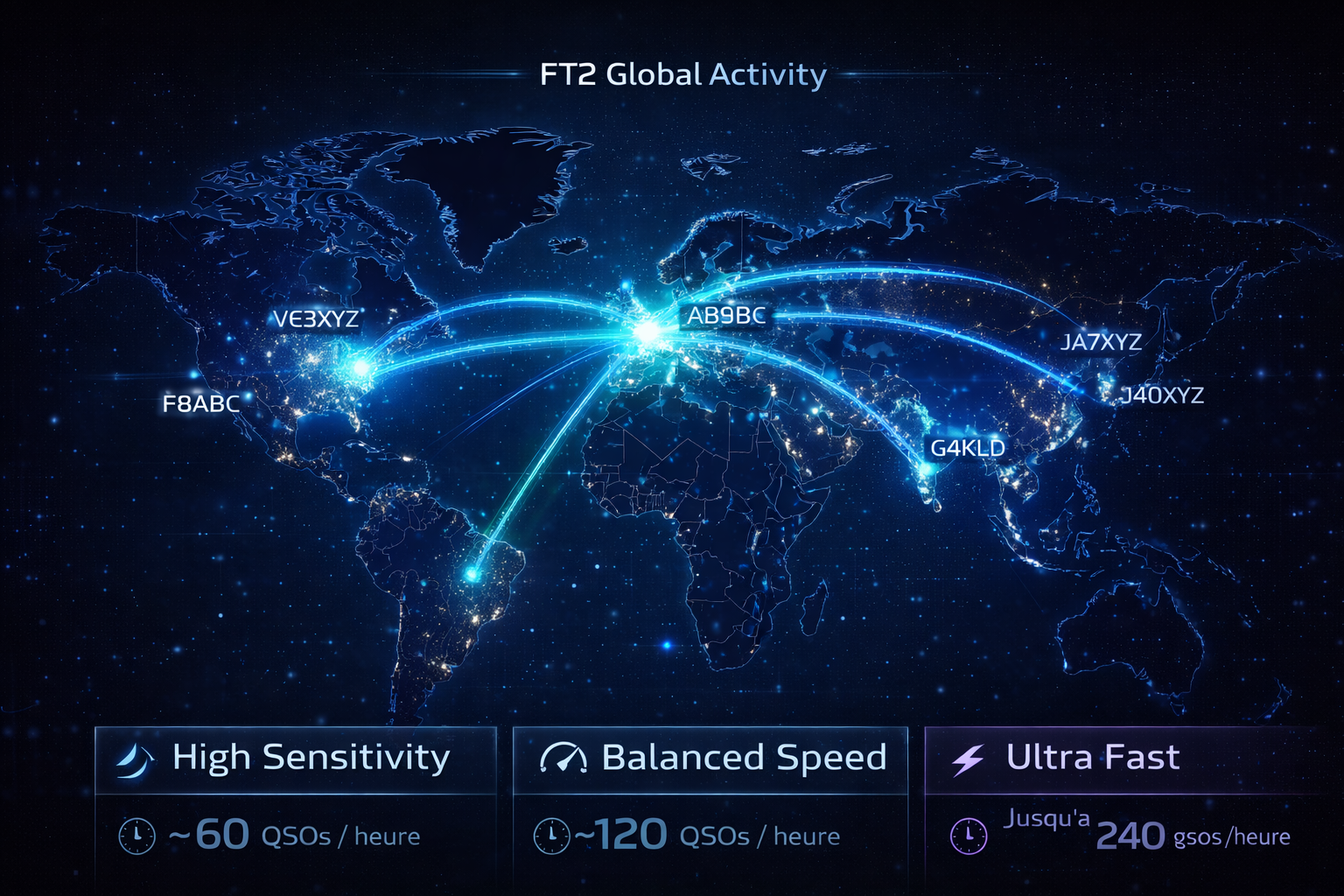 Ce trio de modes (FT8/FT4/FT2) se distingue par :