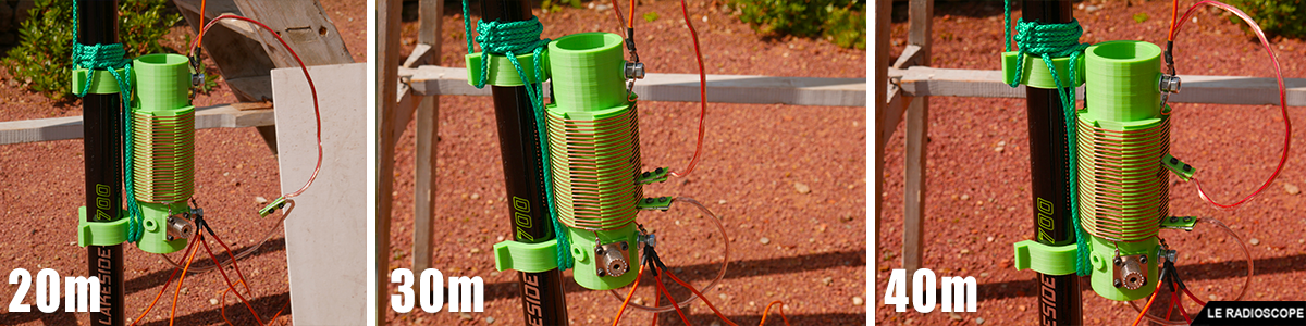 - 40m > Le fil rouge est fixé sur la 3ème spire en partant du haut de la self et le fil noir sur la deuxième spire en partant du bas.